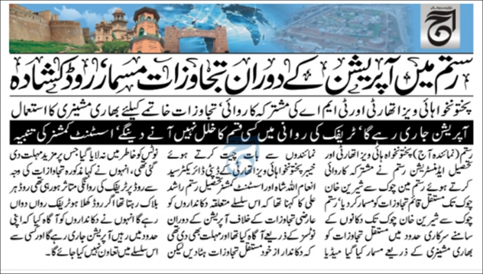 Aug 29 2024 PKHA Alongwith District Administration & TMA Anti Encroachment Drive on Main Rustam Chowk to Sherin Chowk District Mardan.