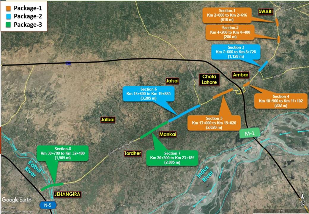 The project starts from Swabi City crossing Peshawar – Islamabad Motorway M-I at Swabi Interchange and ends at Jehangira on GT Road Peshawar. The project envisages the dualization of 11.97 Kilometers of left over portion of existing road and consists of construction of two Major Bridges at Badri and Panjpeer. The construction contract of Package-I & II has been awarded to M/S Sachal Engineering Works (Pvt) Ltd and Package-III to M/S Techno Time Construction Company (Pvt) Ltd. The physical progress and financial progress of the scheme is 27.6% and 25.82% respectively.