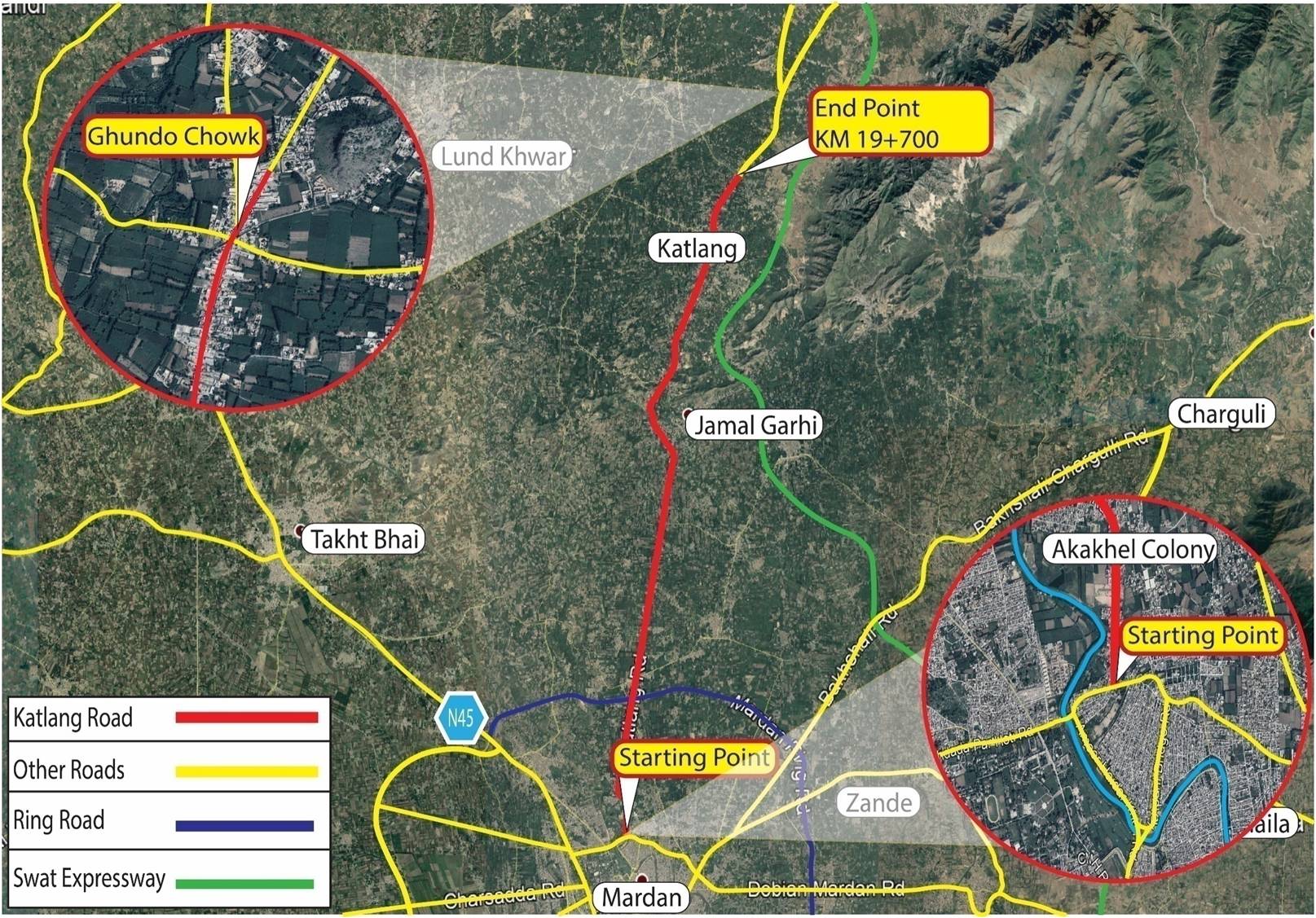The Project is located in District Mardan, The zero point is starting from Katlang Chungi (Mardan Swabi Road) and end point is Matta Bridge Main Irrigation Canal. The Road is passing through Shankar Bazar, Jamal Gari, Parash main stop of Kati Gari as well as Main Katlang Bazar. The Project road total length is 19.675 KM. The Project road is a access road to Babozi Inter Change of Swat Motor Way. The People which came from swat or from Peshawar Islamabad is using as entry road to Katlang Bazar and other surrounding Villages. The Project road have an important role in the development of the Tehsil Katlang. The Project road will give a role in the development of Business between Swat and Mardan. The Project is physically 31.52% Completed,